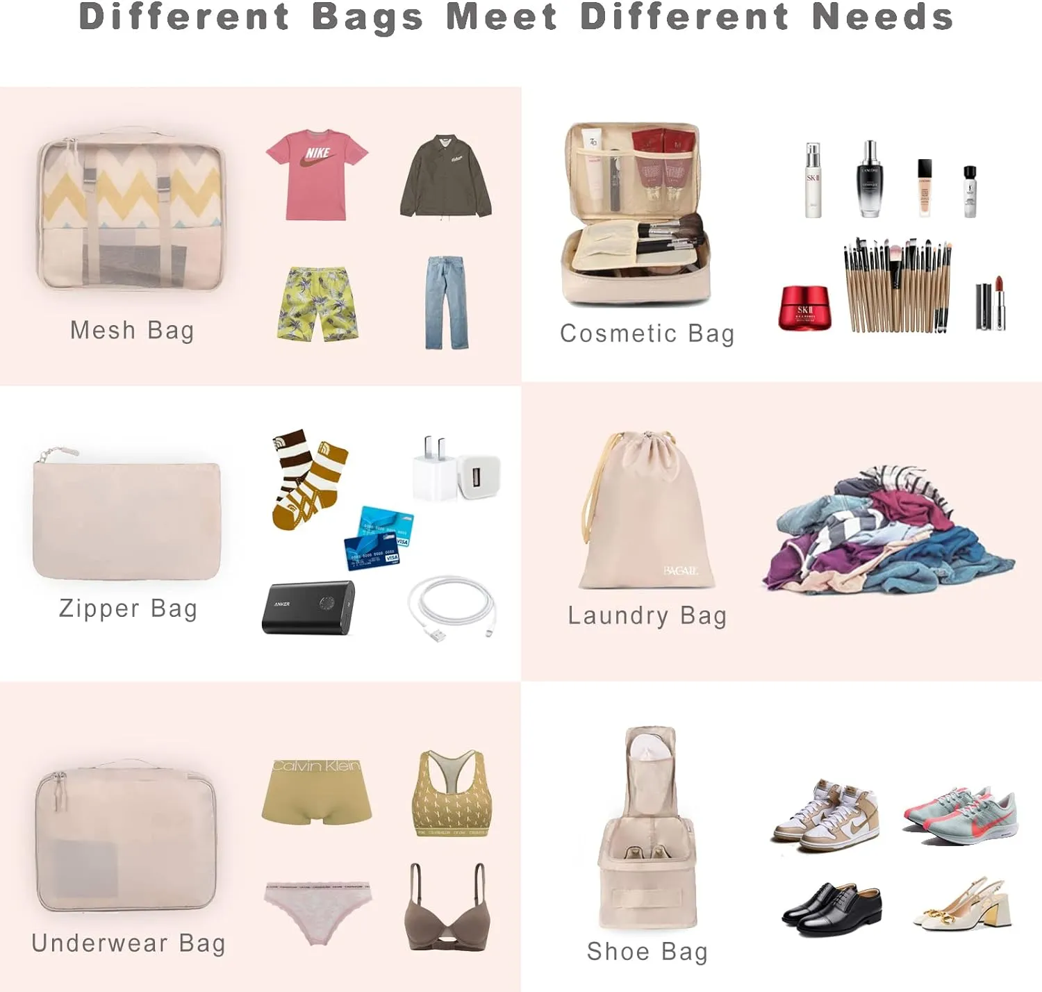 - Grab-and-Go Ready: Mat engem agebauten Haken a multiple Schnellzugriff Taschen, Dir kënnt et an engem Hotelbuedem hänken oder Ären Telefonladeger a Sekonnen fannen.