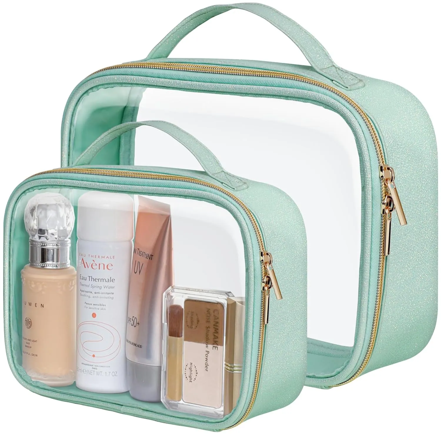 Imagine being able to spot your favorite lipstick or that tiny eyeliner in a split second. The crystal-clear PVC material makes it possible. No more frantic searching during your morning rush or before an important meeting. Everything is right where you can see it.